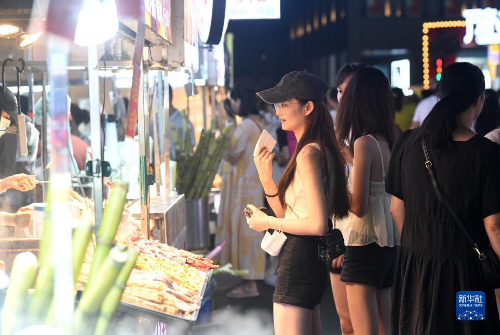市民在廣西南寧市中山路夜市休閑(8月3日攝)。新華社記者 陸波岸 攝